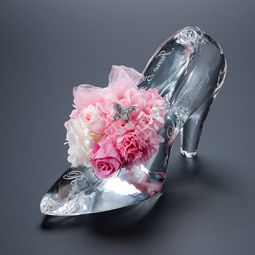 花に名入れ シンデレラの靴 クリスタルガラス メッセージ プリザーブドフラワー≪プリンセスピンク≫38,500 円 (税込)